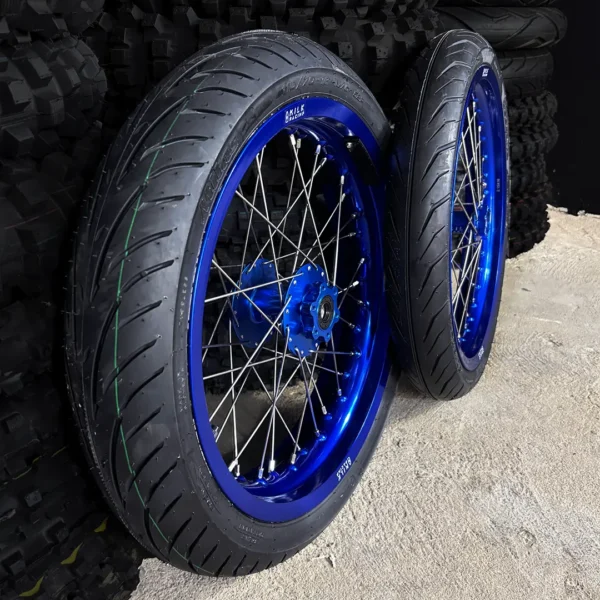 Front 16×2.15″/2.50″ + Rear 16×2.15/2.50/3.00″ Supermoto set benefit: